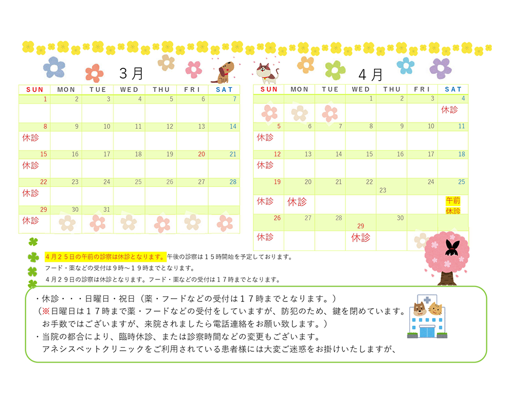 臨時休診・診察時間について